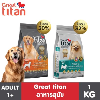 Great titan อาหารสุนัข ขนาด 1 กก. จำนวน 1 ถุง แถมฟรีอีก 1 ถุง